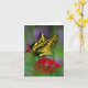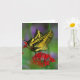 A awe inspiring picture of a yellow butterfly perched on a red flower. This is truly a beautiful note card that anyone would be happy to receive.