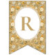 Celebrate your baby shower with this elegant gold floral carriage bunting banner, featuring soft cream florals, warm golden accents, and a vintage carriage centerpiece. The banner spells out WELCOME BABY GIRL with each letter on an individual floral swallowtail flag, perfect for decorating dessert tables, photo backdrops, or entry displays.