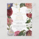 Floral Celebration of Life Gold Cross Funeral Announcement Postcard