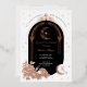 Celebrate a magical milestone with our elegant Starry Night Quinceañera real foil photo invitation, featuring our original hand-drawn artwork for a one-of-a-kind celebration. This whimsical design showcases our hand-drawn, delicate crescent moon, twinkling stars, and soft botanical florals. A regal Quinceañera tiara is nestled within a graceful floral arch and elegant, whimsical column with twinkling stars cascading gently along the side. The reverse side features an elegant arch photo frame and tiara design to display your birthday girl's photo. Perfect for celestial, moonlight, or starlit-themed Quinceañeras, this invitation blends elegance with dreamy romance. Please note that all colours can be changed to suit your party theme and colour decor. Original hand-drawn illustration and design by © Moodthology Papery.
