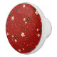 White and Black Flowers on a Red Wavy Pattern with Dots Ceramic Knob