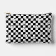 Trendy chequered accessory pouch with black and white chessboard and cute flowers.