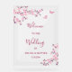 This elegant wedding welcome sign features beautiful pink cherry blossoms and two cute butterflies on a transparent white background.