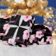 Floral Cherry Blossoms Pink Black Wrapping Paper