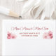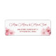 This wedding labels feature a watercolor pink fading cherry blossom on a white background and an elegant calligraphic script.