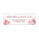 This wedding labels feature a watercolor pink fading cherry blossom on a white background and an elegant handwritten script.