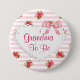 Pretty vintage style pink roses, lace heart and stripes adorn this cute charming "grandma to be" girl baby shower button.