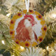 The artwork on this ornament is a watercolor painting of one of my salmon faverolle chickens, a hen named Autumn. I thought a flower wreath would make a pleasant border, drawn from the dandelions and flowers that my chickens commonly scratched around while searching for bugs.