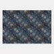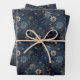 Floral Christmas Midnight Blue and Cream Gift Wrapping Paper Sheet