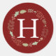 Floral Christmas Wreath Family Monogrammed Name Classic Round Sticker