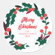 Floral Christmas Wreath Family Name Classic Round Sticker