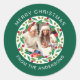 Floral Christmas Wreath Photo Family Name Classic Round Sticker