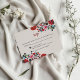 This Floral Colorful Botanical Flowers Spanish Wedding RSVP Card design showcases bold red florals, arranged in a balanced composition at the top and bottom edges, creating an inviting frame for text in the center. The flowers are complemented by stylized stems and leaves in shades of black, pink, blue, and green, adding depth and vibrancy to the overall look. The simplicity of the background highlights the rich, saturated colors of the floral elements, giving the design a lively yet elegant folk-inspired appeal.