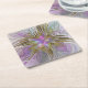 Floral Colourful Abstract Fractal With Pink & Gold Square Paper Coaster