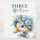 the story of a joyful milestone— very first birthday, a celebration wrapped in love, warmth, and a touch of whimsy. The design centres around a charming goose, lovingly illustrated as if plucked from the pages of a beloved children’s book. He’s not just any goose—He’s “one silly goose,” dressed for a party in a striped hat and floral crown, proudly clutching a Blue balloon. His expression is wide-eyed, innocent, and full of personality—just like a one-year-old discovering the world.