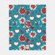 This blanket features a vibrant and playful coquette floral design with a teal background adorned with large red and white flowers, hearts, butterflies, and scattered smaller hearts in matching colours. The cheerful pattern blends a modern aesthetic with a romantic vibe, making it a perfect statement piece for home décor. At the bottom centre, there is a customisable monogram section where initials can be personalised, adding a thoughtful, unique touch. Ideal for gifting or cosying up in style, this blanket combines comfort with customisable charm.