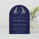 Floral Crest Monogram Navy Heritage Wedding Invitation