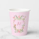 Floral Crest Monogram Pink Baby Shower Paper Cups