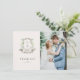 Floral Crest Watercolor Monogram Wedding Thank You Card