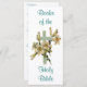 A beautiful card that is perfect to use as a bookmark for your bible. The front has a blue cross covered in flowers. The back has the books of the new and old testiment.