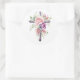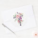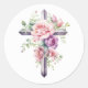Round sticker is shown with a watercolor print of a lovely floral cross.