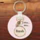 Floral Crown Owl And Wood Slice Personalized Key Ring