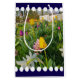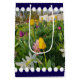 The image on this product depicts a garden of Spring flowers; the colourful blooms in lovely hues of yellow, white, pink, purple, lavender, and fuchsia, with a fun polka dot trim.