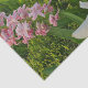The image on this product depicts a garden of Spring flowers; the colourful blooms in lovely hues of yellow, white, pink, purple, lavender, and fuchsia, with a fun polka dot trim.