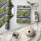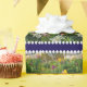 The image on this product depicts a garden of Spring flowers; the colourful blooms in lovely hues of yellow, white, pink, purple, lavender, and fuchsia, with a fun polka dot trim.
