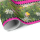 The image on this product depicts a garden of Spring flowers; the colourful blooms in lovely hues of yellow, white, pink, purple, lavender, and fuchsia, with a fun polka dot trim.