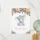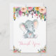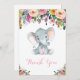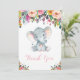 Floral Cute Elephant Baby Girl Pink and Grey Thank You Card