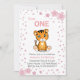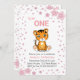 Cute wild one tiger 1st Birthday with pink flowers invitation card. All text ready to be personalised.
