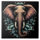 An intricately designed elephant stands majestically, adorned with beautiful floral patterns. The soft light of dawn enhances its elegance, symbolising strength and beauty in nature.