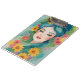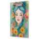This vibrant and whimsical design features an abstract portrait of a woman with teal blue hair adorned with colourful flowers. Her serene expression is accentuated by closed eyes and red lips, giving her a dreamy appearance. Surrounding her are vibrant sunflowers, pink blossoms, and an array of green foliage, creating a lush, garden-like atmosphere. The piece has a soft, vector painterly style, giving it a modern yet romantic feel. The colour palette is dominated by teals, yellows, pinks, and greens, creating a harmonious and eye-catching composition. Personalise with initials.