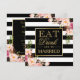 Floral Deco EAT Drink and Be Married B&W Striped Invitation