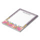 Notepad with beautifully arranged flowers. Add your name in classic dark plum letters.