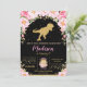 Awesome Floral Dinosaur birthday Invitation. Featuring an a gold glitter dinosaur silhouette adorned by watercolor flowers, confetti and gold glitter details. Perfect for ANY AGE! Personalize this great Dinosaur invitation with your child's name, age and party details easily and quickly, simply press the customize it button to further re-arrange and format the style and placement of the text.