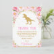 Awesome Floral Dinosaur birthday thank you card to match our Floral Dinosaur Invitation. Featuring an a gold glitter dinosaur silhouette adorned by watercolor flowers, confetti and gold glitter details. Perfect for ANY AGE! Personalize this great Dinosaur thank you card with your thank you message and details easily and quickly, simply press the customize it button to further re-arrange and format the style and placement of the text.