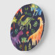 Floral Dinosaurs: Watercolor Fabric Design Large Clock
