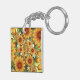 Floral Dream, Modern Abstract Flowers Fractal Art Key Ring