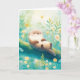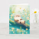 This adorable otter rests on a log surrounded by bright yellow and white flowers. The serene background features soft blues and greens, with the otter peacefully floating in the water. The joyful expression on the otter’s face adds to the tranquillity of the scene, making it perfect for nature lovers and those who appreciate peaceful wildlife illustrations.