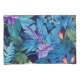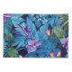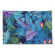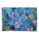 Beautiful tropical floral design in shades of blues, purple, and green on this pillow case