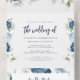 Floral Dusty Blue Bloom Script Wedding All In One Invitation