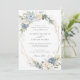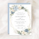 Floral Dusty Blue White Geometric Gold Wedding Invitation Card, Elegant Greenery Wedding Invitation
