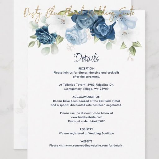 Floral Dusty Blue QR Code All in One Wedding Invitation