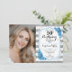 Floral Dusty Blue Silver White Photo 50th Birthday Invitation