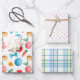 Our adorable Floral Easter Egg & Carrots Wrapping Paper Sheets design features pretty painted Easter eggs in shades of blue, pink and gold, blue bow ties, orange carrots and bright spring florals including yellow daisies, red anemones and green leaves.