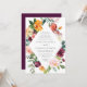 An elegant, modern wedding invitation with an autumn theme. Fall flowers and foliage create a diamond frame around the wedding invitation text. The autumn watercolor floral includes yellow and plum roses, blush flowers, dusty red mums, and fall leaves. The autumn wedding invitation includes space for the couple's first and last names. Personalise the fall wedding invite with your wedding details. This invite matches our "Autumn Elegance" collection.