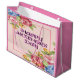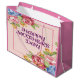 This delightful Mother's Day gift bag is designed to bring joy to your mum on her special day. The bag features a stunning floral arrangement that gracefully adorns the opposite edges, showcasing an array of vibrant flowers in various colours that symbolise love and appreciation.