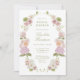 The airy and uncluttered layout allows the intricate floral design and elegant script to shine, enhancing the overall elegance and making it a timeless piece that resonates with guests of all ages. Ideal for spring or summer weddings, this invitation's harmonious blend of colors and design elements suits a variety of themes, from garden ceremonies to elegant ballroom affairs.